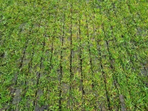 Vrijdag zijn alle foregreens doorgezaaid, dit is een bewerking waarbij een machine graszaad in de grond stopt door de grond open te snijden.