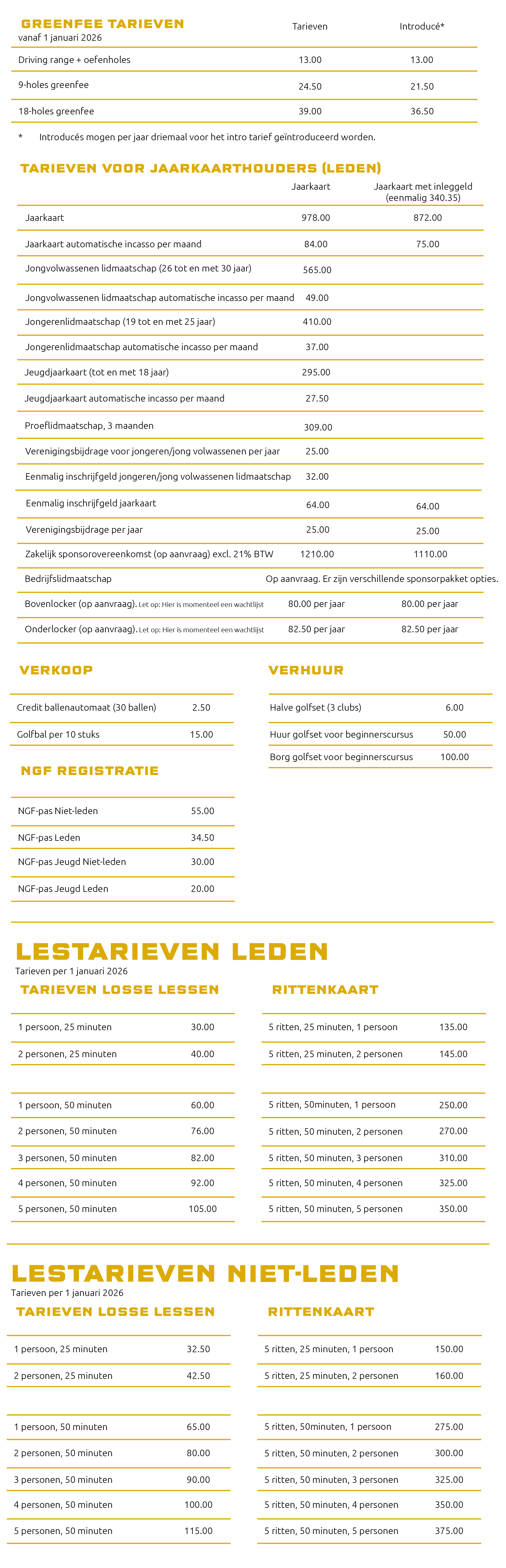 - Per 1 april 2025 betaalt u voor onbeperkt speelrecht € 872,00 of € 75,00 per maand (incl. incassokosten)