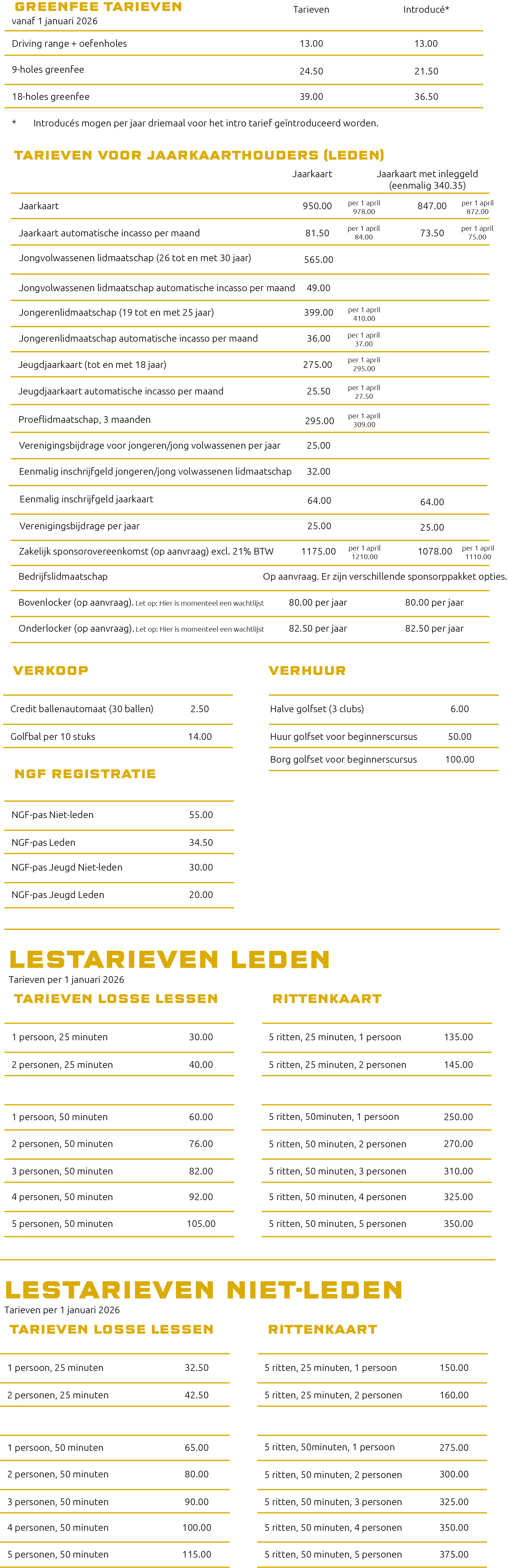 - Per 1 april 2025 betaalt u voor onbeperkt speelrecht € 872,00 of € 75,00 per maand (incl. incassokosten)