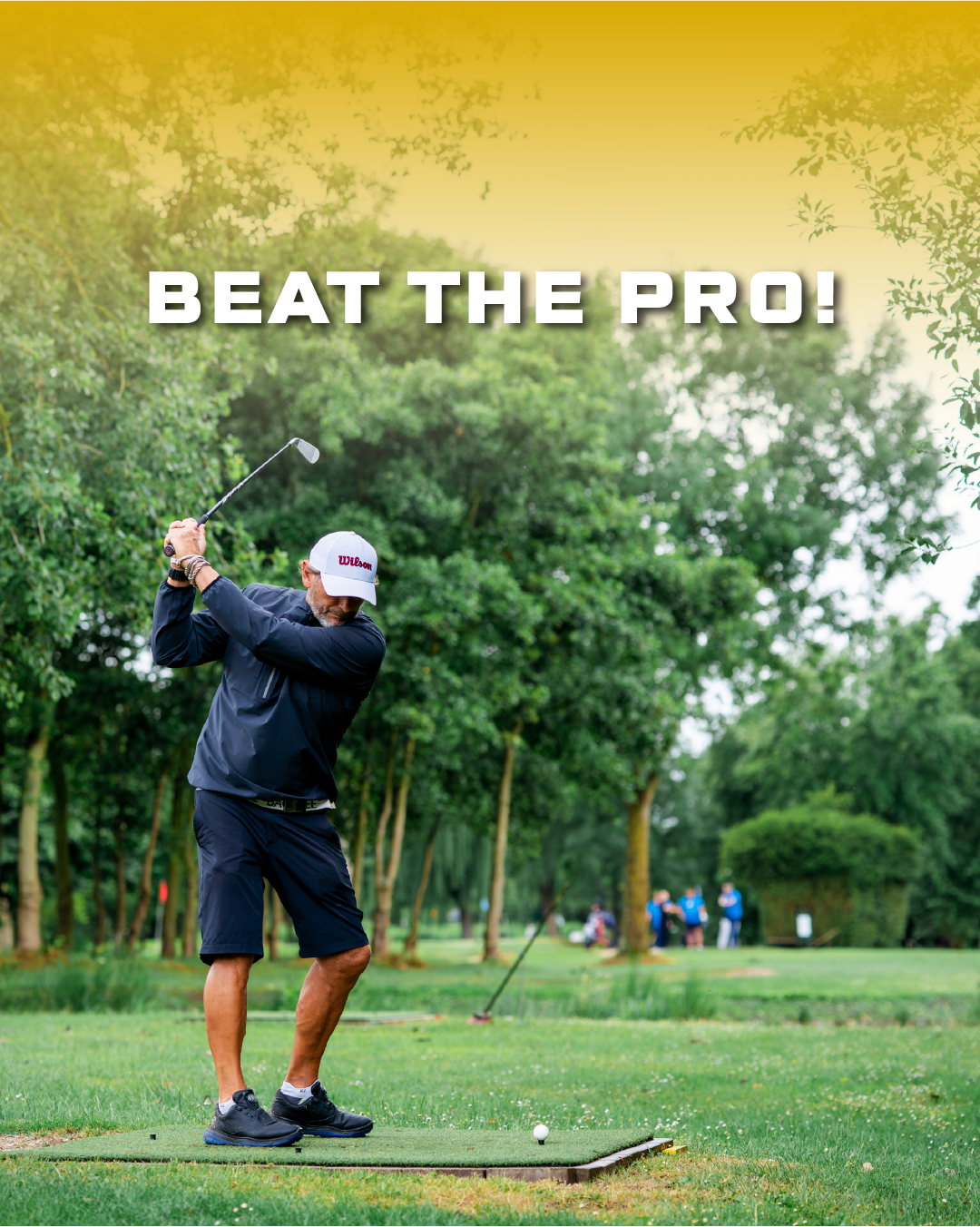 Voor €25 p.p. speel je een 9-holes uitdaging tegen de pro — in wedstrijdvorm, maar mét leerzame tips onderweg. Een perfecte mix van competitie en baanles.